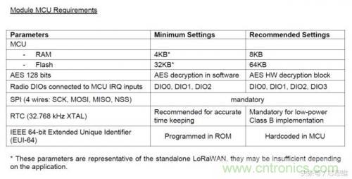 LoRaWAN模組關(guān)鍵的器件是MCU和SX127x。MCU多以超低功耗為主要選擇,在Semtech公司的應用筆記中提到了MCU的規(guī)格和要求 -《AN1200.28 LoRaWAN MCU Spececification and Requirements》: