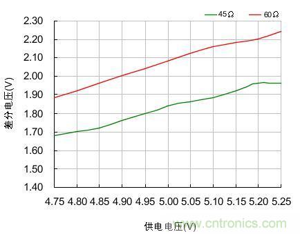 圖2.不同供電電壓下的差分電壓