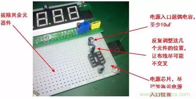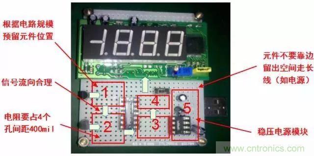 電源貫穿電路始終,合理的電源布局對(duì)簡(jiǎn)化電路起到十分關(guān)鍵的作用。某些洞洞板布置有貫穿整塊板子的銅箔,應(yīng)將其用作電源線和地線;如果無此類銅箔,你也需要對(duì)電源線、地線的布局有個(gè)初步的規(guī)劃。