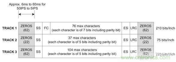 根據(jù)信息量的多少,數(shù)據(jù)將被編碼在不同的行,這個行被稱為磁道。一個磁卡上最多可以有3條磁道。