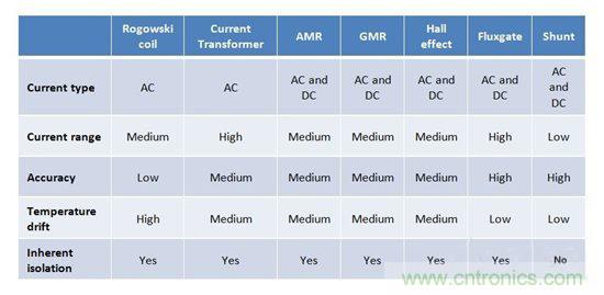 表1:電流檢測方法的比較