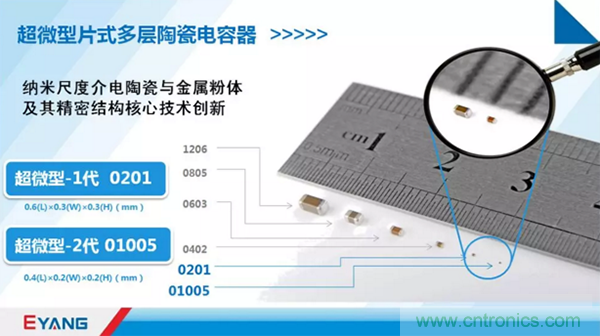 深圳市宇陽(yáng)科技發(fā)展有限公司承擔(dān)的國(guó)家強(qiáng)基工程項(xiàng)目“移動(dòng)互聯(lián)用超微型片式多層陶瓷電容器”再次取得新進(jìn)展:在超微型-1代產(chǎn)品0201實(shí)現(xiàn)產(chǎn)業(yè)化的基礎(chǔ)上,超微型-2代產(chǎn)品01005研發(fā)成功,達(dá)成產(chǎn)業(yè)化能力。到去年為止,兩者共計(jì)形成近900億片的年總產(chǎn)能。