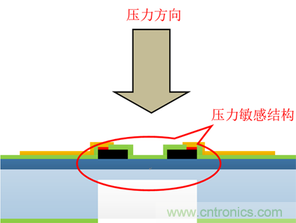 當(dāng)壓力敏感結(jié)構(gòu)受到氣壓壓力時(shí),壓敏電阻的阻值發(fā)生變化,進(jìn)而引起輸出電壓Vout發(fā)生變化,通過輸出電壓值與壓敏電阻的阻值變化的關(guān)系,實(shí)現(xiàn)壓力值的測(cè)量。