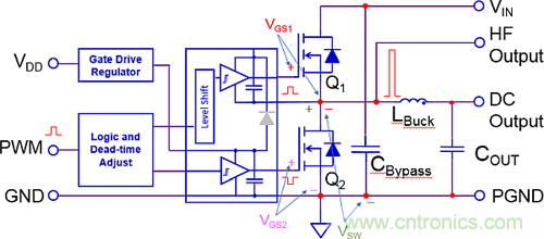 圖1:本文使用的eGaN FET測(cè)試板的簡(jiǎn)化原理圖