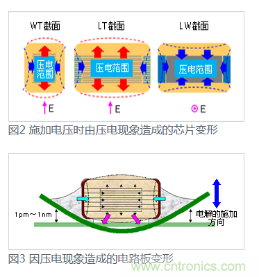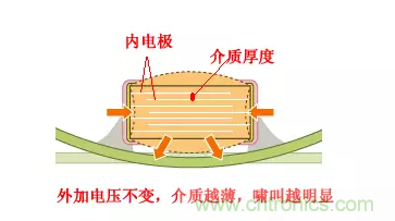 陶瓷介質(zhì)是MLCC主要組成部分,電壓作用下,電致伸縮不可避免。如電致伸縮強烈表現(xiàn)為壓電效應,則會產(chǎn)生振動。