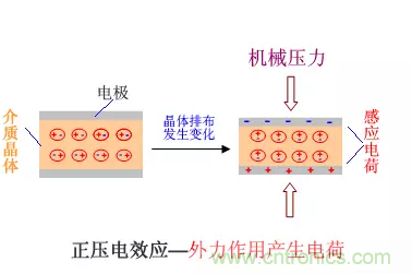 對具有壓電特性的介質(zhì)材料施加機械壓力,介質(zhì)晶體會發(fā)生結(jié)構(gòu)重組排布,材料表面會感應出電荷,產(chǎn)生電位差。
