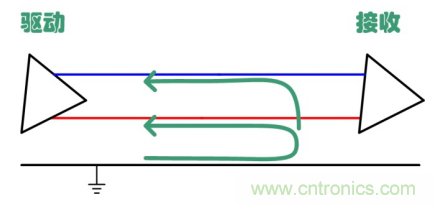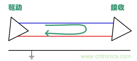 先介紹共模干擾,圖 1、圖 2分別給出了差模和共模干擾及其傳輸路徑。圖中的驅(qū)動器及接收器為差分信號傳輸,類似CAN總線。差模干擾產(chǎn)生于兩條傳輸線之間,共模干擾則在兩條線中同時產(chǎn)生,其電勢是以地為參考。