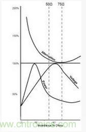 在有線電視等應(yīng)用中,衰減比功率處理更為關(guān)鍵,使用了75歐姆的電纜。75歐姆的另一個(gè)優(yōu)點(diǎn)是它可以通過簡單的4:1巴倫輕松匹配標(biāo)準(zhǔn)的300歐姆折疊偶極天線元件。然而,在絕大多數(shù)微波/毫米波應(yīng)用中,需要使用50歐姆的阻抗。