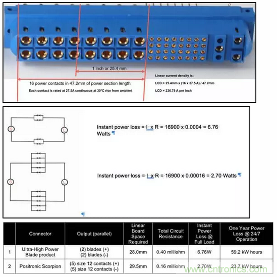 與安費(fèi)諾的PwrBladeULTRA®連接器系統(tǒng)相比,Positronic的Scorpion SP系列連接器是一種機(jī)械接觸式電源連接器,單位效率從1,560W提高0.26%。在連續(xù)一年,每周7天,每天24小時(shí)運(yùn)行的情況下,Scorpion連接器可節(jié)省35.5度電,相當(dāng)于節(jié)省了3美元以上。因此,從運(yùn)營(yíng)的第三年開始,僅節(jié)省能源成本就會(huì)超過Scorpion連接器的全部成本。