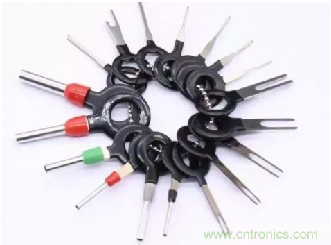 而汽車連接器在拆卸過程中,由于電子連接器種類繁多,常規(guī)也有幾十種,所以在拆卸過程中使用最常見的就是插頭拆裝退針器,線束挑針解鎖工具。這些工具在市場上也是非常流行。常常是15套裝或18套裝,基本滿足所有電子連接器線束插頭端子拆卸。
