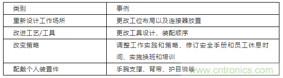 檢驗(yàn)每項(xiàng)任務(wù)及其相關(guān)風(fēng)險,并確定重新設(shè)計(jì)工作場所、改進(jìn)工藝/工具、更改策略以及配戴個人防護(hù)裝備等潛在補(bǔ)救措施。