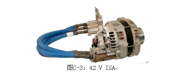 用于中型混合動力系統(tǒng)的ISG(集成式起動機(jī)/發(fā)電機(jī)),輕型汽車為14 V,120 A,而在制動和停車期間沒有燃料噴射時,空轉(zhuǎn)引擎為42 V,60至80 A輸出。