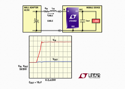 凌力爾特公司 (Linear Technology Corporation) 推出 2.5V 至 5.5V 過壓和過流保護(hù)器 LTC4362,該器件為保護(hù)低壓、便攜式電子產(chǎn)品免受電壓瞬態(tài)和電流浪涌的損害而設(shè)計(jì)。電源適配器失效或故障,或者將一個(gè) AC 適配器帶電插入設(shè)備的電源輸入時(shí),可能會(huì)發(fā)生過壓。無意間將錯(cuò)誤的電源適配器插入設(shè)備可能會(huì)因過壓或負(fù)電源電壓而引起損壞。LTC4362 運(yùn)用準(zhǔn)確度為 2% 的 5.8V 過壓門限檢測過壓事件,并在 1us (最大值) 時(shí)間內(nèi)快速響應(yīng),以隔離下游組件和輸入。高達(dá) 28V 的過壓保護(hù)由一個(gè)內(nèi)部雪崩額定的低 RDS(ON) MOSFET 實(shí)現(xiàn),而且在大多數(shù)應(yīng)用中無需瞬態(tài)電壓抑制器 (TVS) 或其它外部組件,就可承受電感電纜瞬態(tài)。此外,LTC4362 監(jiān)視一個(gè)內(nèi)部電流檢測電阻器兩端的壓降,以提供準(zhǔn)確度為 20% 的 1.5A 過流門限。LTC4362 目標(biāo)是具有多個(gè)電源選項(xiàng)的便攜式電子產(chǎn)品,如通過交流和汽車電池適配器以及USB端口充電的蜂窩電話、MP3/MP4 播放器、數(shù)碼相機(jī)等。