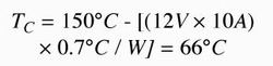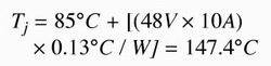 計算出的結溫非常接近功率FET(NTB52N10T4)的額定溫度上限Tj(150℃),如果外殼溫度發(fā)生一個很小的變化,很容易便超過了它。