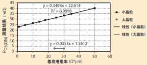 基底電阻率的變化會給RDS(on)測量結(jié)果帶來線性響應(yīng)。圖3顯示了遠(yuǎn)遠(yuǎn)超出實(shí)際基底正常分布的基底電阻率。這樣做是為了顯示響應(yīng)是線性的。