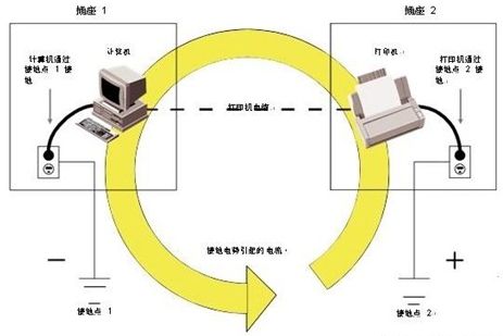 工廠設(shè)施中的接地連接只能連接到電力線路配電板上的單一連接點(diǎn)。這種與地面單點(diǎn)連接的方式可以避免由于疏忽而造成多個(gè)接地點(diǎn)。多個(gè)接地點(diǎn)會(huì)造成市電電壓的差異,導(dǎo)致不希望的電流流向低壓數(shù)據(jù)線。并對(duì)數(shù)據(jù)傳輸造成噪音干擾,雖然不會(huì)引起太大的損害,但也可能會(huì)形成瞬變電壓浪涌,嚴(yán)重?fù)p壞設(shè)備傳輸線。圖 2 顯示了一個(gè)接地回路示例。每個(gè)設(shè)備獨(dú)立接地(每個(gè)電源插座都參照不同的接地點(diǎn))。如果設(shè)備通過(guò)某種形式的接地(也導(dǎo)電)數(shù)據(jù)線連接在一起,就會(huì)出現(xiàn)問(wèn)題。在圖2 中,計(jì)算機(jī)使用并行通信電纜連接到打印機(jī)。如果所使用設(shè)備接地點(diǎn)之間存在電勢(shì)差(有電荷差異),那么電流可能會(huì)通過(guò)并行電纜從一個(gè)設(shè)備流到另一設(shè)備,以便中和電荷。這就是“接地回路”,會(huì)對(duì)設(shè)備造成嚴(yán)重?fù)p壞,因?yàn)樵O(shè)備在正常條件下只需很小的電力就 可以工作。雖然這個(gè)示例只顯示了一處設(shè)施,但接地回路也可以在不同設(shè)施之間形成。