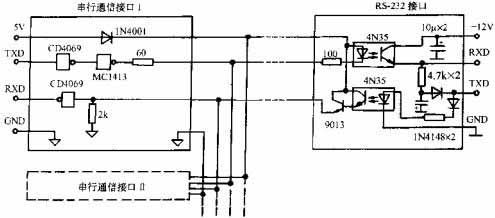 所謂隔離技術(shù),是指將噪聲源與信號(hào)線相互隔離開的技術(shù)。在單片機(jī)系列中經(jīng)常采用光耦合器來(lái)實(shí)現(xiàn)傳感器與輸入通道的隔離、I/O接口的隔離及內(nèi)部電路的隔離。此外,在遠(yuǎn)距離傳輸信號(hào)時(shí),也需要采用光電隔離技術(shù)。一種采用光電隔離技術(shù)的網(wǎng)絡(luò)通信接口電路如下圖所示。在對(duì)被傳輸?shù)哪M信號(hào)進(jìn)行隔離時(shí),宜選用線性光耦合器,其電流傳輸比接近于常數(shù)。