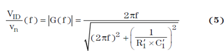 將差動(dòng)網(wǎng)絡(luò)轉(zhuǎn)換為單端網(wǎng)絡(luò)(請參見圖 4),簡化了 G (f) 的推導(dǎo)過程,但卻要求 C′1 = 2C1,R′1= R1/2,C′2 = 2C2,以及 R′2 = R2/2。