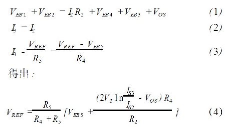 從式(4)中可以看出2 ln ( IS3 / IS2 ) VT相對于ln( IS3 / IS2 )VT受失調(diào)電壓VOS的影響明顯減少,即級連二極管的采用使基準(zhǔn)電壓受運放失調(diào)影響減少?! ?br />
