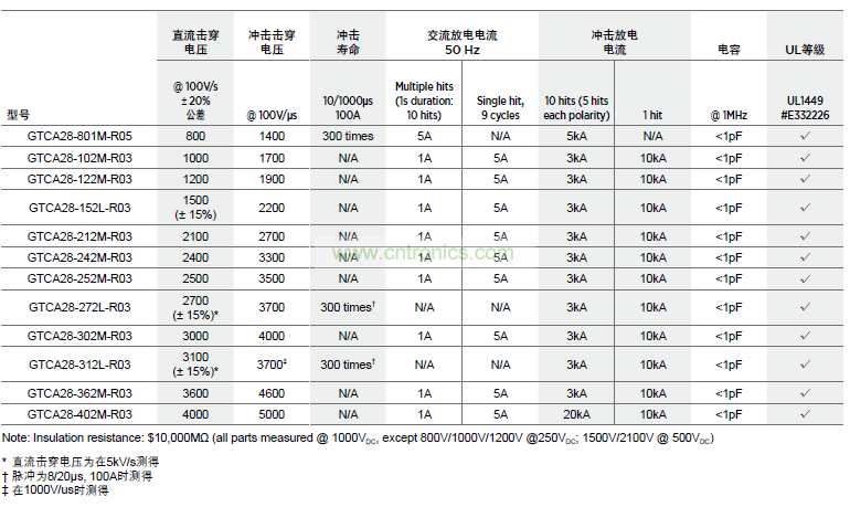 極佳的脈沖擊穿性能,適用于敏感設(shè)備