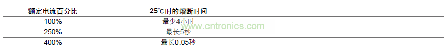 表 FF1 熔斷時間特性