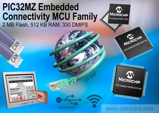 全球領先的整合單片機、混合信號、模擬器件和閃存專利解決方案的供應商——Microchip Technology Inc.(美國微芯科技公司)宣布推出兩款最新創(chuàng)新產(chǎn)品。擁有24款器件的全新PIC32MZ嵌入式連接(EC)系列32位MCU提供了330 DMIPS和3.28 CoreMarks™/MHz的卓越性能,以及有雙存儲區(qū)的現(xiàn)場升級閃存(高達2 MB)、512 KB的大容量RAM,以及支持當今要求嚴苛的應用所需的連接外設。同時,Microchip還推出了業(yè)界最全面的32位單片機固件開發(fā)框架——MPLAB® Harmony。該框架是第一款把許可、轉(zhuǎn)售及支持Microchip和第三方中間件、驅(qū)動程序、函數(shù)庫和實時操作系統(tǒng)集成于一體的產(chǎn)品,簡化了包括全新PIC32MZ系列在內(nèi)的所有32位MCU的開發(fā)過程,縮短了集成和上市所需的時間。