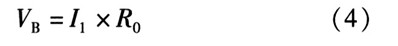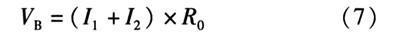B點(diǎn)的電壓為電阻上的電壓,可由歐姆定理計算得到。計算溫度上升翻轉(zhuǎn)點(diǎn)TH,當(dāng)溫度上升時,由前分析可知,TSD為高電平,M2截止。因此流入R0的電流只有I1一路。此狀態(tài)下VB電壓的表達(dá)式為