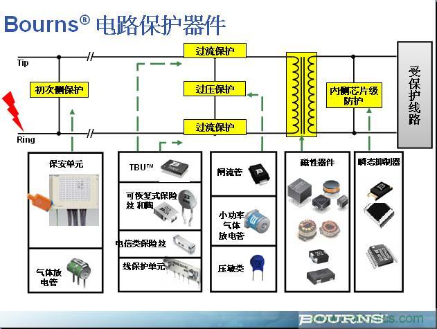 這些保護元器件,一般過壓的都是在芯片上面。一些保安單元、氣體放電管等等,這邊會放在靠近外面的部分。中間的部分我們會用一些像是保險絲,或者是電感、電阻等等,來做一個協(xié)調(diào)的作用。可以看到這邊都是我們目前所有的保護元器件。利用不同的保護元器件進行搭配,提供一個完整的解決方案。