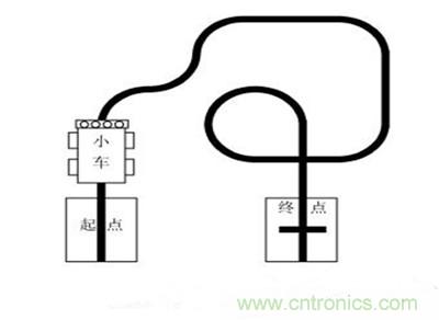 所謂小車循跡,就是在白紙上畫出黑色的線條,稱為賽道;小車沿著賽道按要求(可以做一些指定的任務(wù))行進時,能自動識別賽道并按賽道線條行走,稱為小車循跡。如圖1所示,該賽道是2010年全國職業(yè)院校大學(xué)生職業(yè)技能競賽月球車競賽項目湖南賽區(qū)賽道圖。