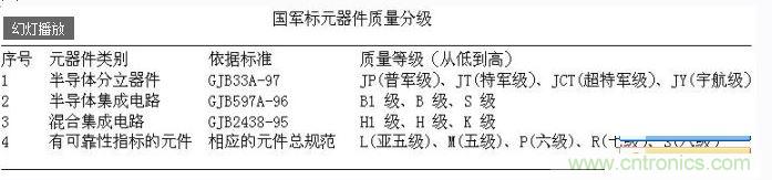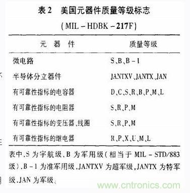(2)選擇生產(chǎn)過程中經(jīng)過嚴(yán)格老煉篩選的高可靠元器件(如集成電路883級(jí)及其以上級(jí),半導(dǎo)體分立器件為JAN FX及其以上級(jí));