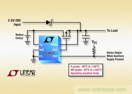 【導(dǎo)讀】近日,凌力爾特公司宣布推出低損耗電源通路控制器LTC4412,該控制器具有最新高可靠性和軍用溫度級(jí)版本 ,是堅(jiān)固的“理想二極管”電源通路控制器。LTC4412 可同時(shí)實(shí)現(xiàn)多個(gè)輸入 DC 電源的低損耗 “合路” 操作。