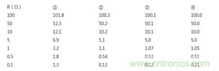 比較分四組進行:①用普通數(shù)字萬用表測量;②用四線測量(借助于數(shù)字萬用表本身的恒流源電流);③用四線測量(用外加的恒流源電流);④饋線補償測量。