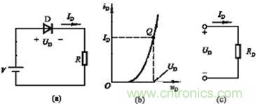 圖(a)電路(b)二極管伏安特性(c)二極管的動態(tài)電阻