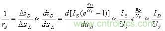 rd是用以Q點(diǎn)為切點(diǎn)的切線斜率的倒數(shù)。顯然,Q點(diǎn)在伏安特性上的位置不同,rd的數(shù)值將不同。根據(jù)二極管的電流方程
