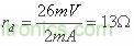 ID為靜態(tài)電流,常溫下UT=26mV??芍o態(tài)電流ID越大,rd將越小。設(shè)UD=0.7V時(shí),ID=2mA。由此可得直流電阻RD=350,而動態(tài)電阻(交流電阻)