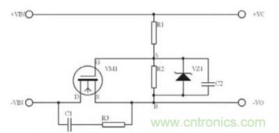 VZ1為穩(wěn)壓管防止柵源電壓過(guò)高擊穿mos管。NMOS管的導(dǎo)通電阻比PMOS的小,最好選NMOS。