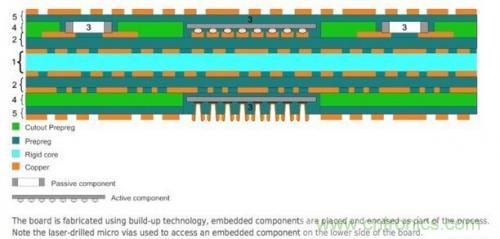 對(duì)于開發(fā)者來說目前有幾種嵌入有源元件的方式:模塊電路板(IMB)、嵌入式晶圓級(jí)封裝(EWCP)、嵌入式晶片堆層(ECBU)和高分子嵌芯片(CIP)。最后一種方法可以把薄片晶圓封裝直接嵌入到堆疊的介質(zhì)層上,而不是使用通過鉆孔或走線連接到核心材料的凹槽,這種方法也支持FR-4多層電路板。