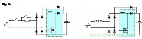 圖1: 基于電阻器和繼電器的電涌限流電路 (a)和基于混合整流橋的電涌限流電路(b)