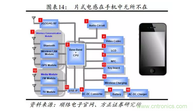 磁性產(chǎn)品性能不輸村田、TDK,被動元器件全球第三,緊追村田、TDK。加之國內(nèi)手機廠商崛起,憑借技術(shù)與供貨渠道雙重優(yōu)勢穩(wěn)固市場地位,為傳統(tǒng)電感內(nèi)資絕對龍頭。