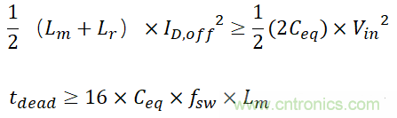 通過對上圖的分析,可以得出需要滿足ZVS的兩個必要條件,如下: