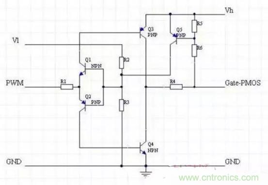2,用小幅度的PWM信號驅(qū)動高gate電壓需求的MOS管。
