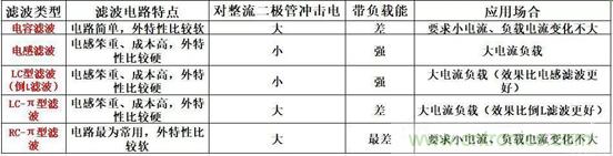 在輸出端并聯(lián)一個電容,這種電路較為簡單,只有一個一般比較大的電解電容,輸出電壓隨著輸出電流變化而變化,外特性比較軟,輸出特性很差,因此適用于負載電流變化不大的電路,同時負載電流不是很大的場合;為了減少脈動成分,有時候會并聯(lián)一大一小的電容。