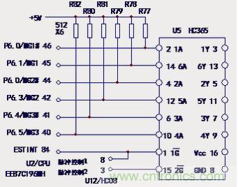 如圖4所示,U2的脈沖引腳的上拉電阻為5.1k,在3.3~10kΩ的范圍之內(nèi)。