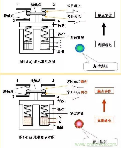 中間繼電器就是個繼電器,都是由固定鐵芯、動鐵芯、彈簧、動觸點、靜觸點、線圈、接線端子和外殼組成。線圈通電,動鐵芯在電磁力作用下動作吸合,帶動動觸點動作,使常閉觸點分開,常開觸點閉合;線圈斷電,動鐵芯在彈簧的作用下帶動動觸點復(fù)位。