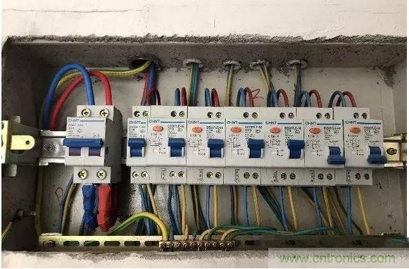 空氣開關(guān)作為總開關(guān)安裝在最前面,后面除了照明回路都使用漏電開關(guān)的安裝方式的缺點,估計就是費用會相對高一些,占用的空間要大一些。