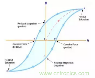 【導(dǎo)讀】磁飽和是磁性材料的一種物理特性,指的是導(dǎo)磁材料由于物理結(jié)構(gòu)的限制,所通過的磁通量無法無限增大,從而保持在一定數(shù)量的狀態(tài)。一般的電感都有一條磁化曲線(B-H Curve), 這是一條反應(yīng)磁場強(qiáng)度H和磁感應(yīng)強(qiáng)度B的一條對應(yīng)曲線。