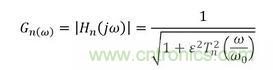其中ω為角頻率,n為該濾波器的階次。