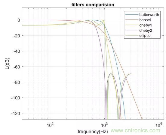 雖然在通帶和阻帶內(nèi)都沒有波動,但是保留通帶信號的能力以及過渡帶衰減速度都沒有巴特沃斯卓越;