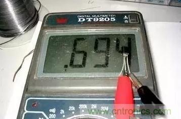2、如果三極管的紅表筆接其中一個管腳,而用黑表筆測其它兩個管腳都導(dǎo)通有電壓顯示,那么此三極管為NPN三極管,且紅表筆所接的腳為三極管的基極B,用上述方法測試時其中萬用表的黑表筆接其中一個腳的電壓稍高,那么此腳為三極管的發(fā)射極E,剩下的電壓偏低的那個管腳為集電極C。