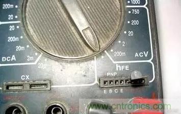 找到基極和知道是什么類型的管子后,就可以來判斷發(fā)射極和集電極了。如果使用指針式萬用表到了這個步可能就要用到兩只手了,甚至有朋友會用到嘴舌,可以說是蠻麻煩的。而利用數(shù)字表的hFE檔(hFE;測量三極管直流放大倍數(shù))去測就方便多了,當(dāng)然你也可以省去上面的步驟直接用hFE去測出三極管的管腳極性,我自己則認(rèn)為還是加上上面的步驟方便準(zhǔn)確一些。
